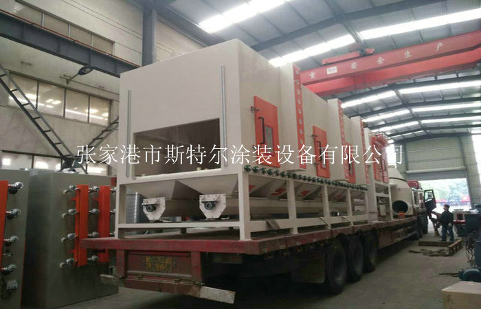 5.斯特爾設計制造的通過式噴砂機可以實現皮帶輸送、鏈條式輸送、滾軸式輸 送、懸掛式輸送等方式結構。