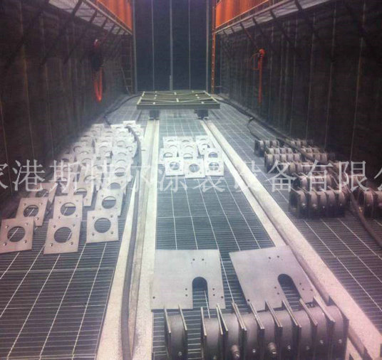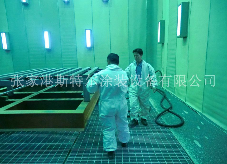 根據客戶要求及工件尺寸,房體工作尺寸設計為18x6x6.5m。本噴砂房體選用100mm方管做通常架構,組織結構選用50方管做組織結構支承,組織結構鋪2mm鋼條及3mm聚氨酯材料板,山外壁墻選用50mm厚彩鋼瓦板夾心板開發,性能大方、布置便利、防蝕使用。彩鋼瓦板條夾心層為聚苯氯乙烯發泡可塑料,與日常用純鋼條定制的