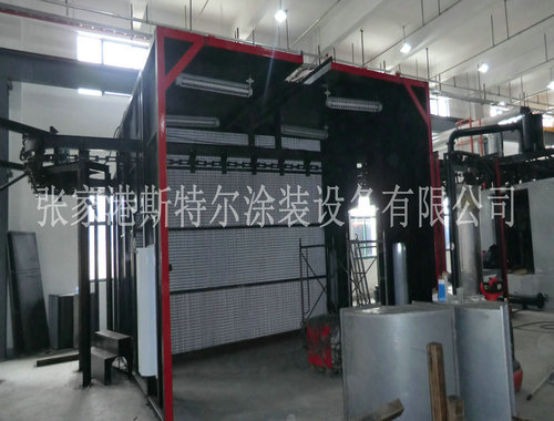 (6)環氧瀝青漆室進行上回風管道、下排煙管道的干井式環氧瀝青漆室。