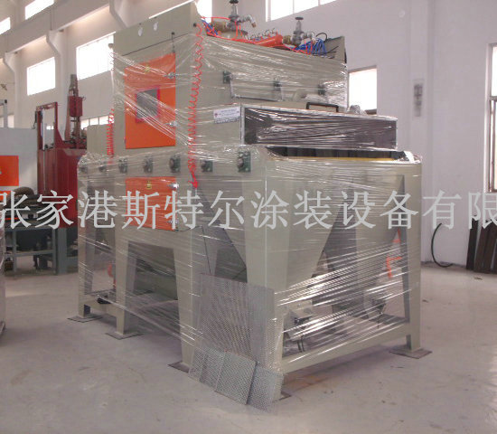 為蘇州企業設計制造不銹鋼自動噴砂機交付使用 說明:本設備為輥輸送式噴砂機,本機共配備24把噴頭,采用機械回收磨料方式(絞龍輸送機,提升機方式),配備4濾筒噴砂機專用除塵器,噴頭可左右移動速度可調,該噴砂機配置了清掃反吹系統,噴砂機室體為3mm鋼板制作,內鋪耐磨橡膠板保護噴砂機室體。